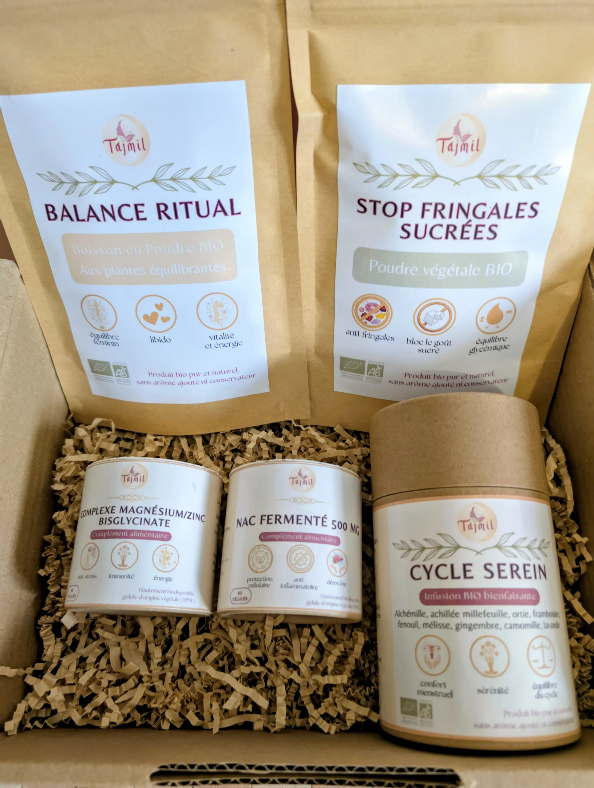 • En journée : 1 à 2 tasses de Tisane Cycle Serein pour soutenir l’harmonie du cycle.