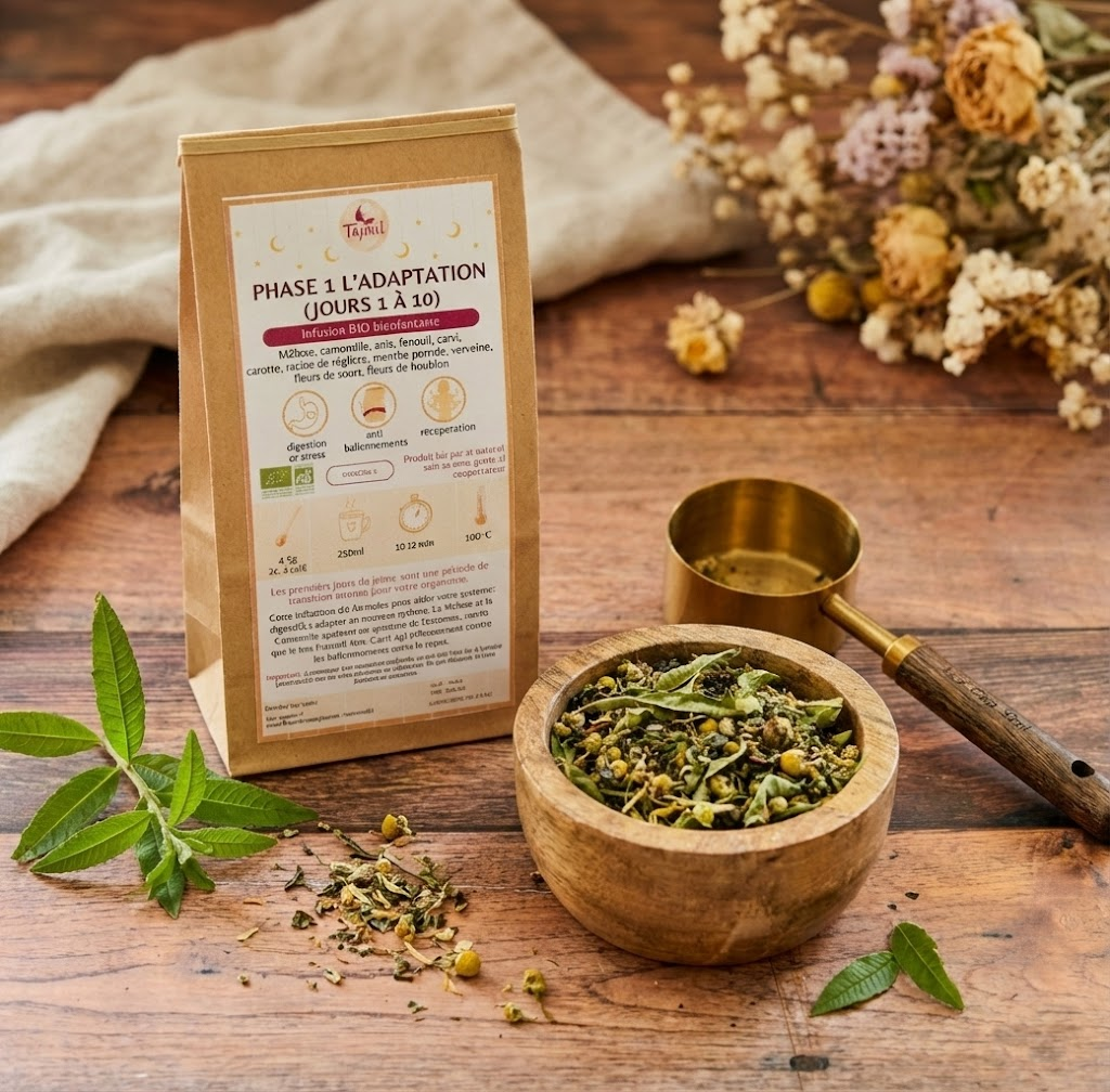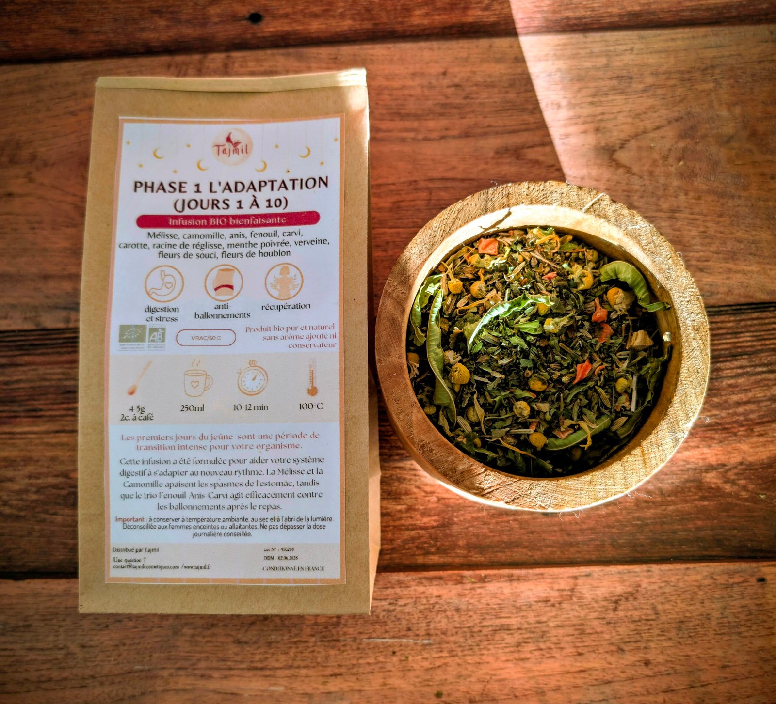 • Du 1er au 10ème jour : Buvez la Tisane L’ADAPTATION juste après le repas pour faciliter la digestion.
