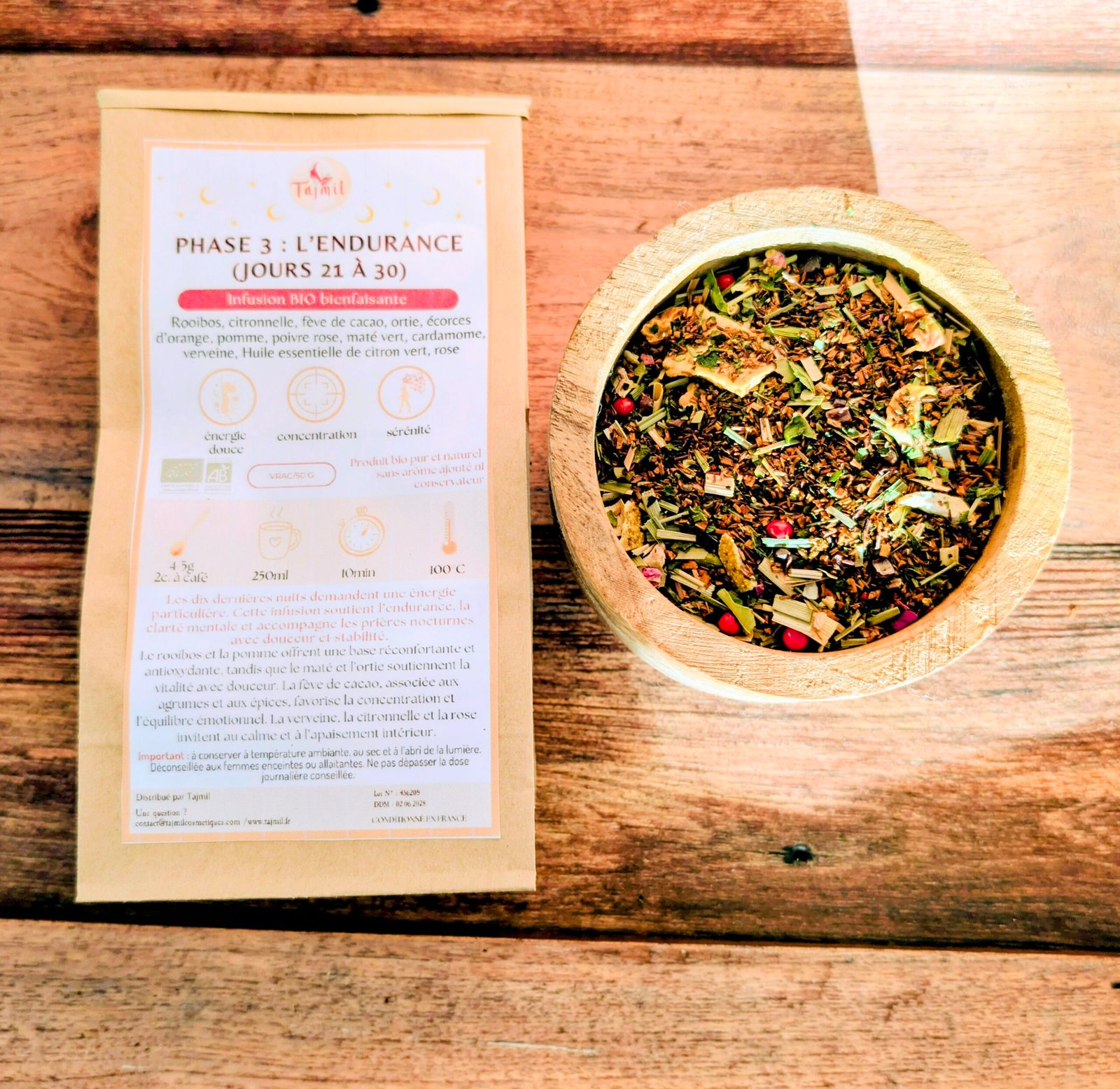 • Du 21ème au 30ème jour : Buvez la Tisane L’ENDURANCE après l’Iftar pour rester énergique lors de vos prières nocturnes.