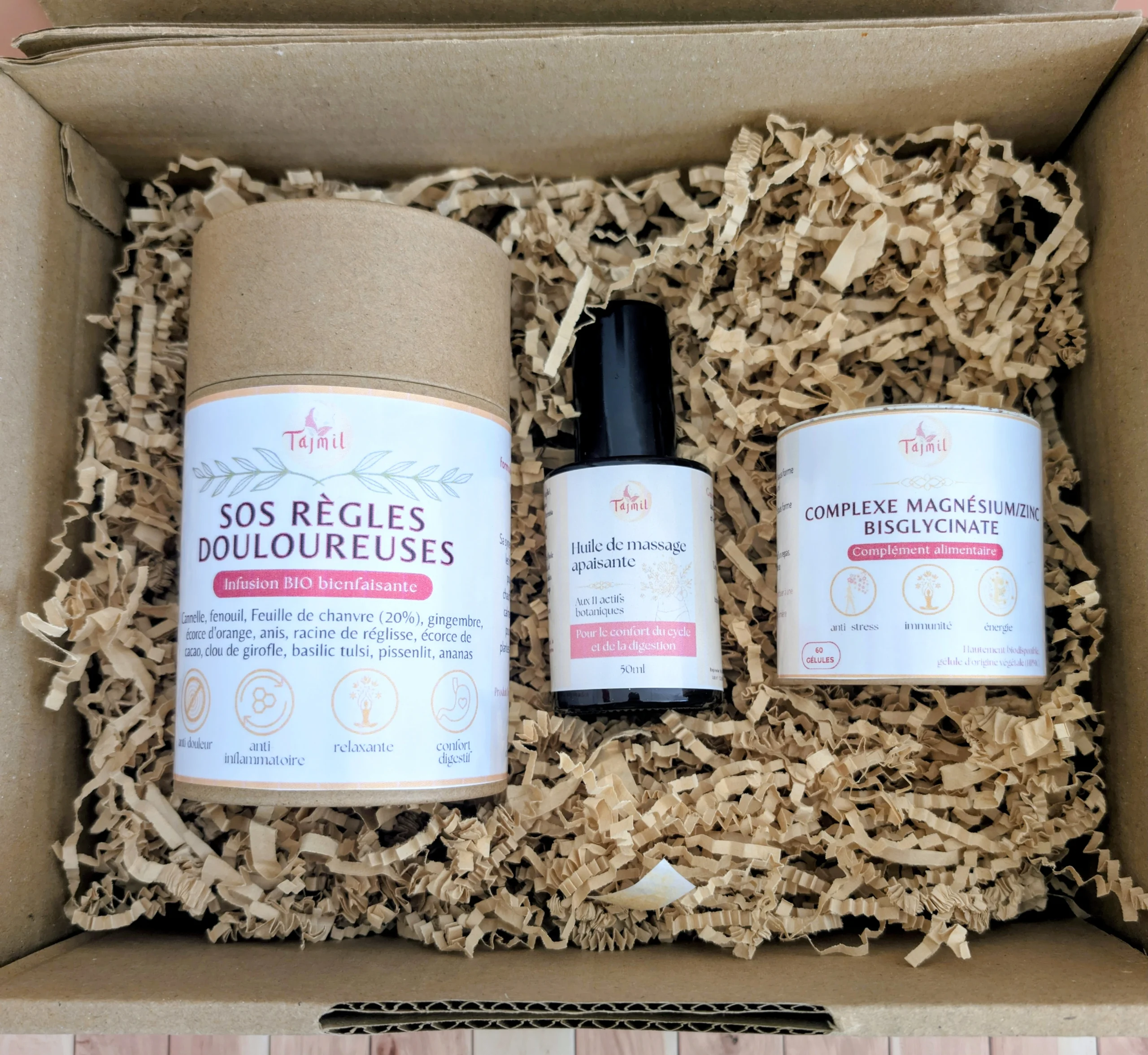 Nous avons réuni dans ce coffret nos 3 alliés SOS : une tisane experte, une huile de massage ciblée et un minéral essentiel pour une approche complète.